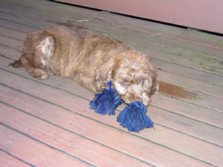 A blue tug -of-war toy! Currently my mummy and daddy do not really want me to play tug of war but it's still a nice chew-toy